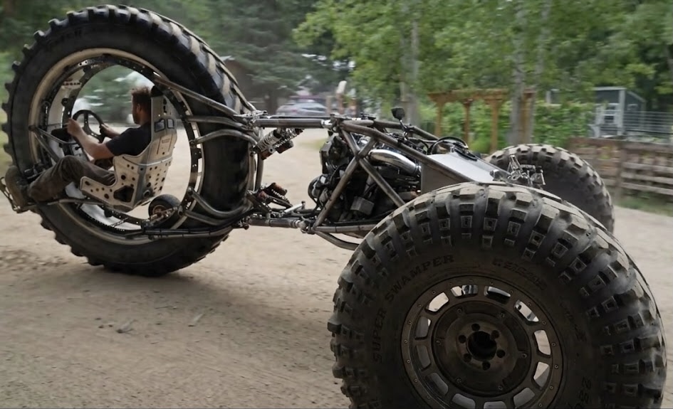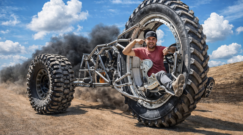 The Monster Trike from Grind Hard Plumbing Co. is one of the wildest custom builds ever to roll out of a home fabrication shop. At first glance it looks like something from a post-apocalyptic movie: a massive three-wheeled machine with an enormous tractor tire up front — and that’s exactly where the driver sits. The cockpit is built inside the giant front wheel, making the tire both a structural element and the most eye-catching feature of the vehicle.